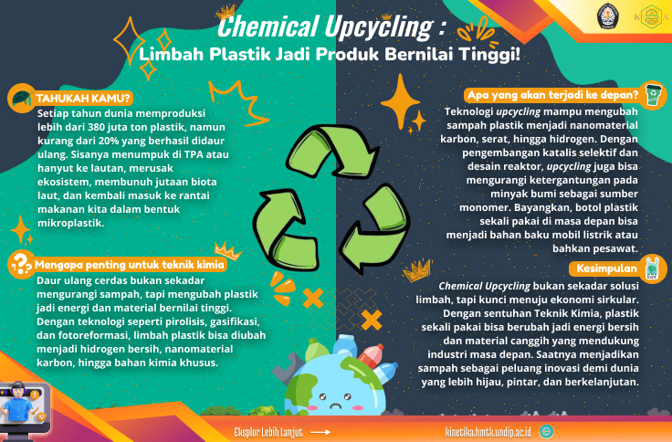 Chemical Upcycling mengubah limbah plastik menjadi energi bersih dan material bernilai tinggi lewat teknologi seperti pirolisis, gasifikasi, dan fotoreformasi. Selain mengurangi sampah, inovasi ini membuka jalan menuju ekonomi sirkular.