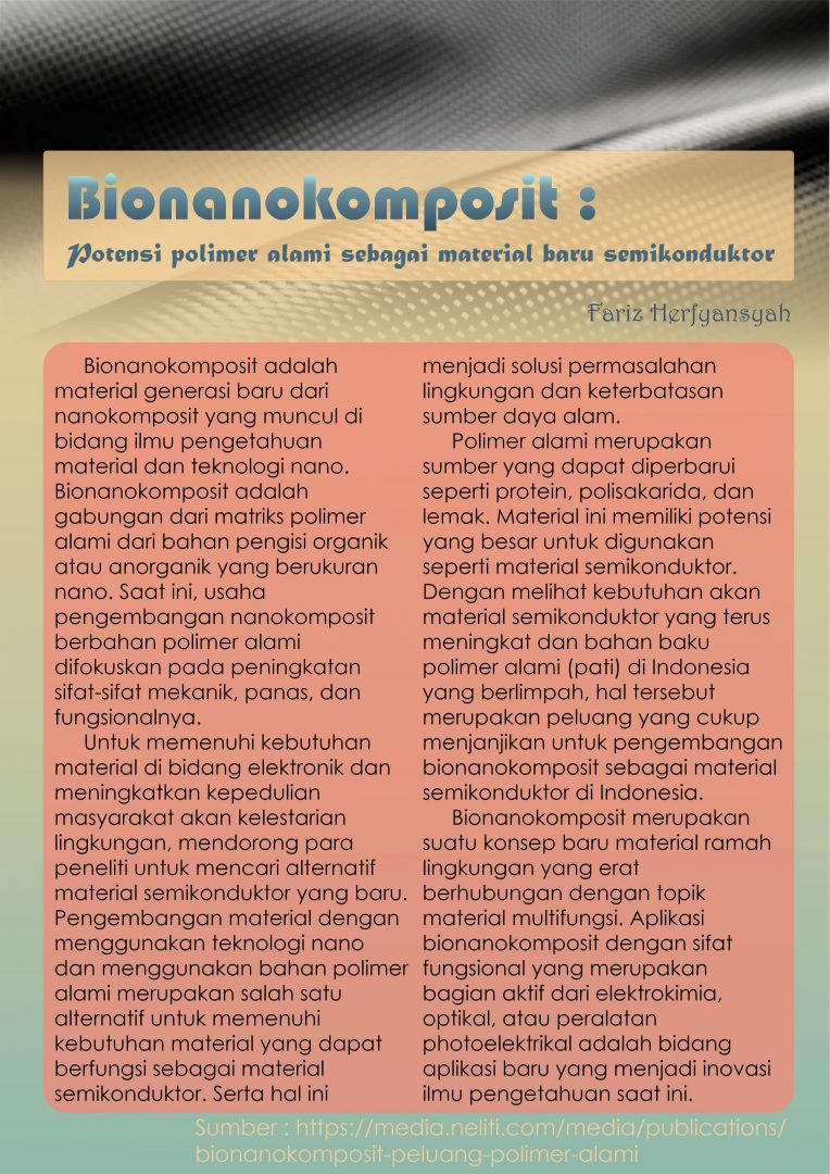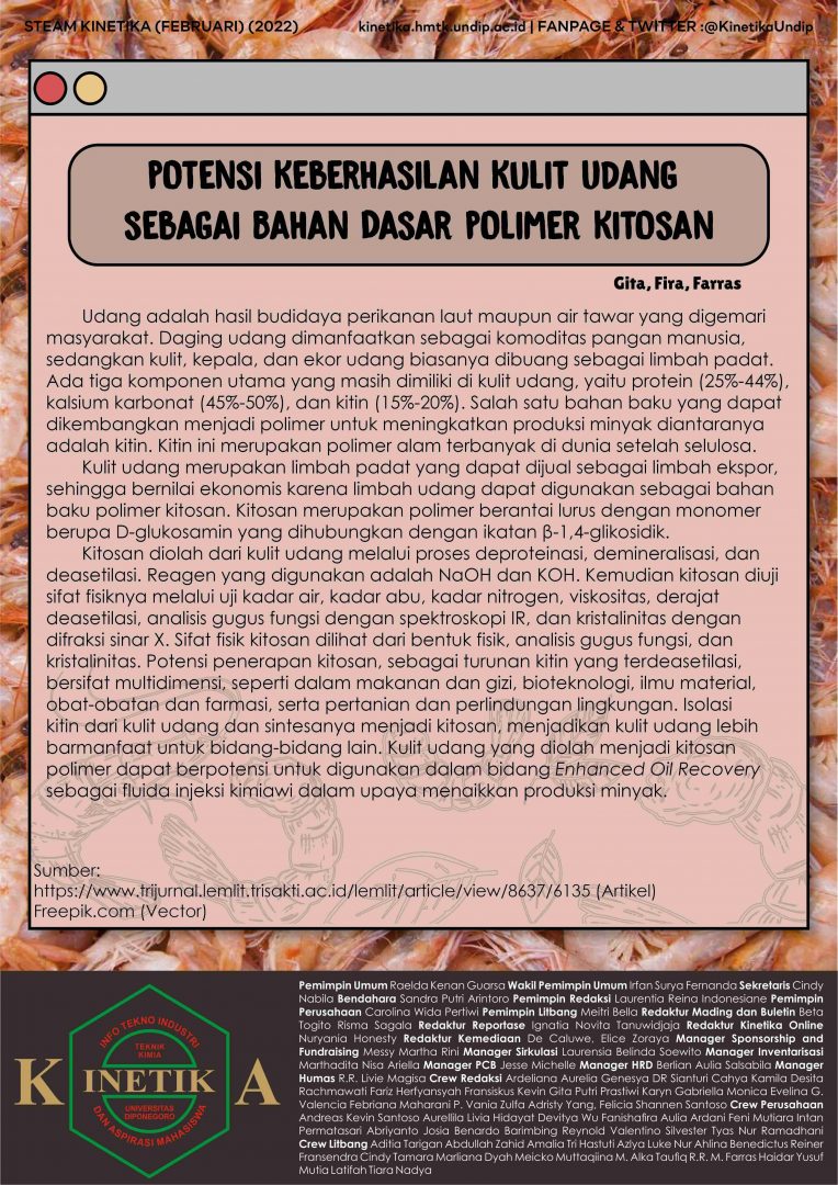 Terdapat tiga buah artikel dan satu buah steam bertemakan Polymer, serta satu buah reportase dinamika kampus yang dibuat oleh crew Kinetika.
