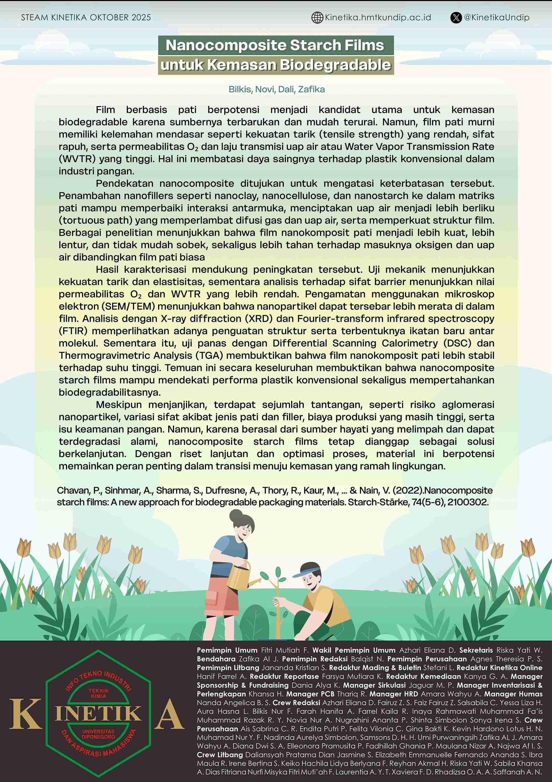 - Steam: Nanocomposite Starch Films untuk Kemasan Biodegradable , pembahasan ilmiah mengenai penguatan film pati menggunakan nanoteknologi untuk meningkatkan sifat biodegradabilitas.